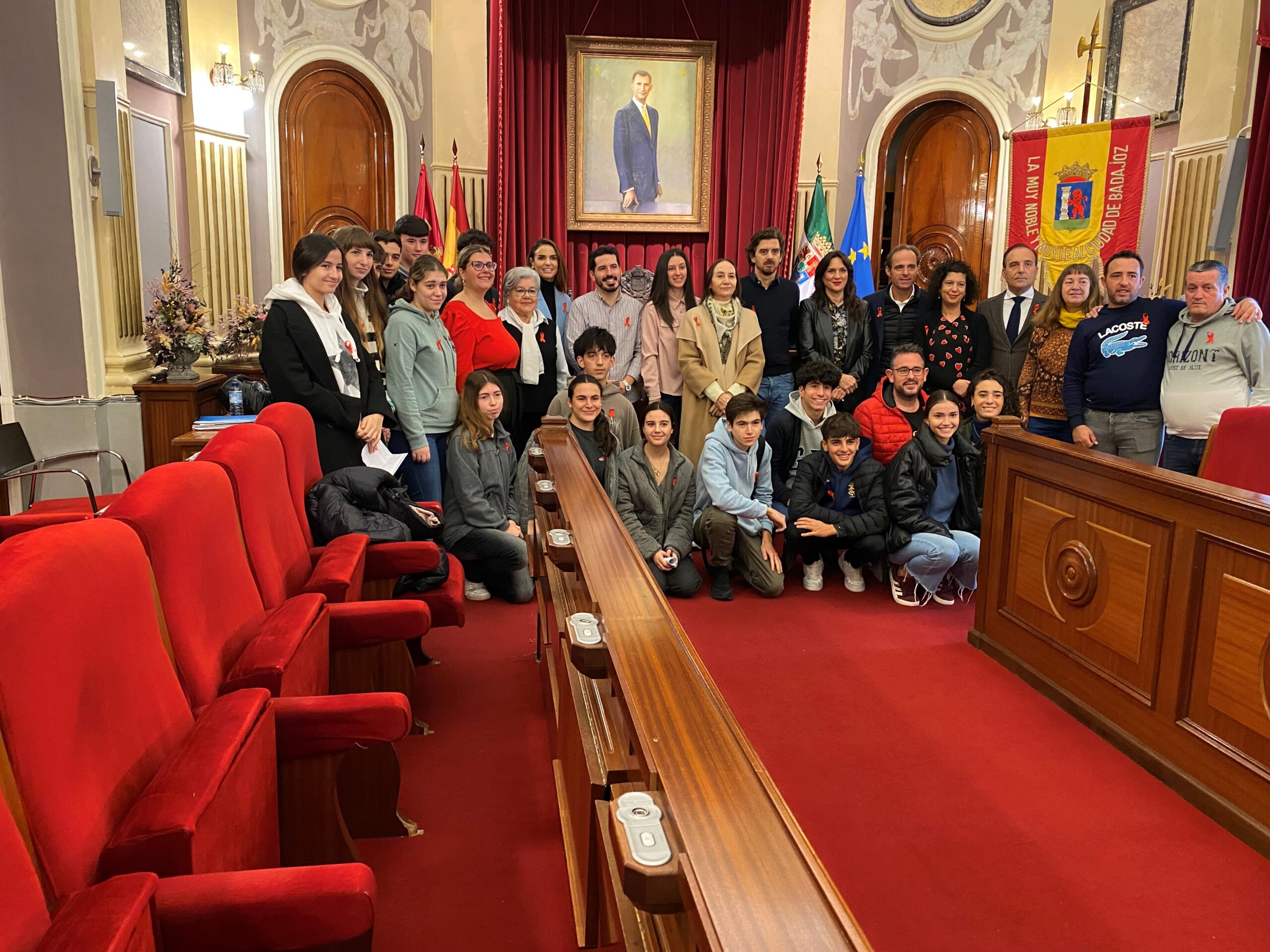 A continuación, se ha realizado una foto de familia en las escalinatas de pleno, y se ha colgado un lazo de grandes dimensiones en la fachada del Ayuntamiento de Badajoz, que permanecerá colgado hasta el 2 de diciembre. Además, el próximo domingo 1 de diciembre se iluminará la fachada del ayuntamiento de color rojo.